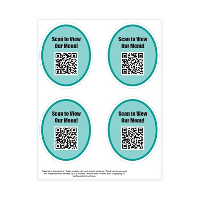 Custom Full Color Repositional Oval Wall & Counter Decals, 4 mil. Vinyl, Set of 4, Sheet Size- 9-1/4" x 12"