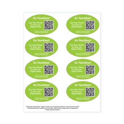 Custom Full Color Repositional Oval Wall & Counter Decals, 4 mil. Vinyl, Set of 8, Sheet Size- 9-1/4" x 12"
