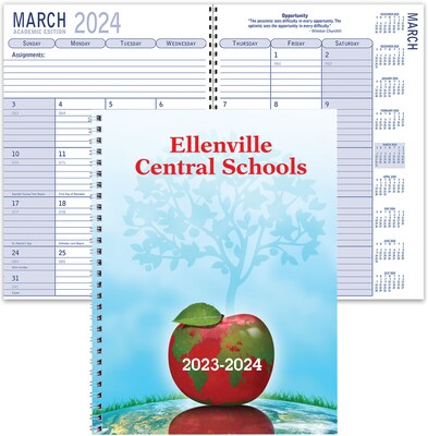 - Spiral bound academic calendar with fully customizable cover and inside cover.