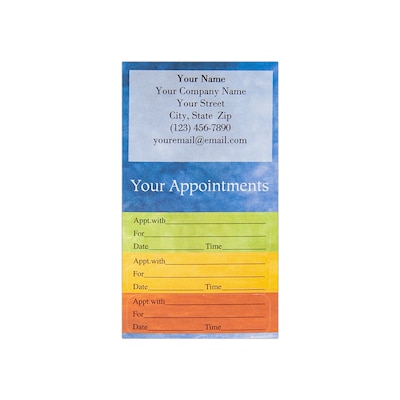 This full color appointment card includes three removable rectangle stickers on the bottom of the card to write appointment date and time information.