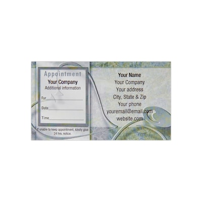 This full color appointment card includes a removable rectangle sticker on the left side of the card to write appointment date and time information.
