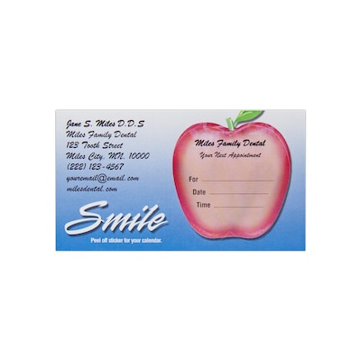 This full color appointment card includes a removable apple sticker on the right side of the card to write appointment date and time information.