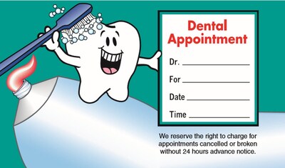 This full color appointment card includes a removable rectangle sticker on the right side of the card to write appointment date and time information.