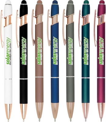 Show off Your Company Logo With This Classy Ultima™ Rose Gold Accent Stylus Pen Printed in Vivid Full Color! Its sleek rose gold finish that exudes elegance and refinement makes it a standout accessory for any professional setting.