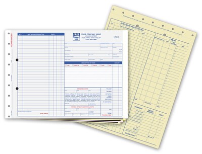 Custom Garage Repair Orders - Large with Side-Stub and Carbons, 4 Parts, 1 Color Printing, 11" X 8 1/2" ,500/Pack