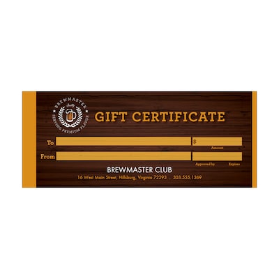 - 8.5" x 3.5" gift certificates with a horizontal orientation