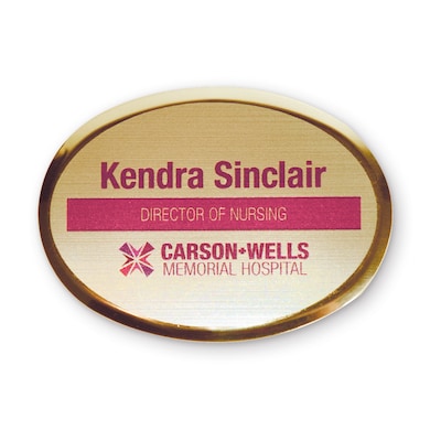 Custom Gold Metallic Full Color Name Badge, 2" x 2-3/4" Oval
