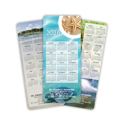 Custom Hanging Calendar Assortment Packs, 3.625" x 8.5", 12 Pt. Coated Stock, Three Designs, 100/Pack