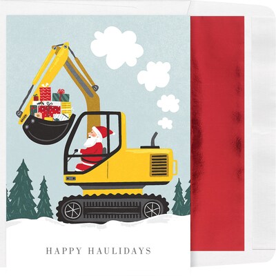 Custom Happy Haulidays Excavator Santa Cards, with Envelopes, 5-5/8" x 7-7/8", 25 Cards per Set