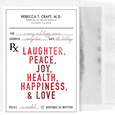 Custom Holiday RX Pad Cards, with Envelopes, 5-5/8" x 7-7/8", 25 Cards per Set