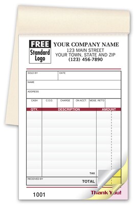 Custom Image Sales Book, Small 2 Parts, 1 Color Printing, 3 3/8" x 5 1/8", 500/Pack