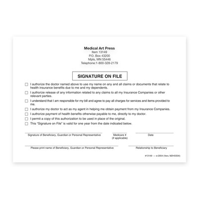 Professional note pad provides a quick and easy way to obtain patient authorization for a variety of insurance issues.