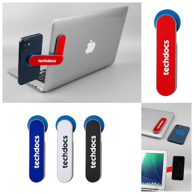 - Stick on back of your laptop to hold your phone at the same level