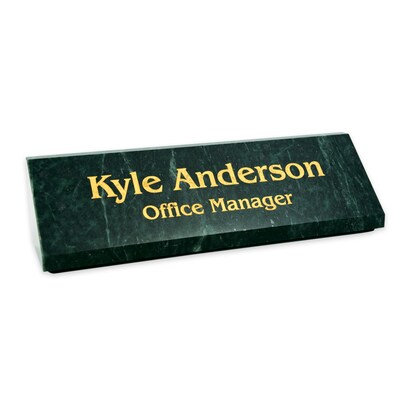 Custom Laser Engraved Green Marble Desk Name Plate Bar, 2-3/16" x 8"