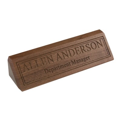 Custom Laser Engraved Inset Letters Name Plate Sign on Walnut Desk Bar, 1-3/4" x 8-1/2"