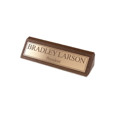 Custom Laser Engraved Name Plate Gold Inlay Walnut Desk Bar, 2-1/2" x 8-1/2"