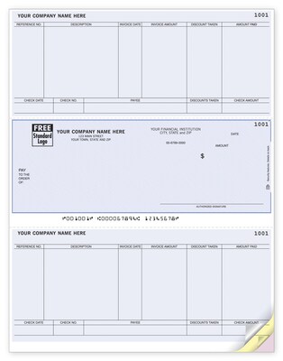 These popular computer accounts payable checks allow you to pay multiple business invoices with 1 check! Send your laser check with a voucher listing invoice numbers, amounts, discounts & more - while keeping a second voucher for your records.