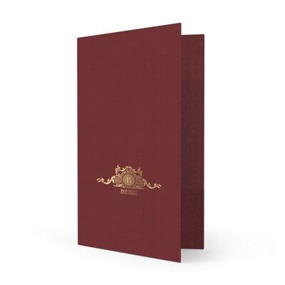 Custom Legal Two Pocket Presentation Folders, 9" x 14.5", Burgundy Linen 80#, 1 Standard Foil, 50/Pack