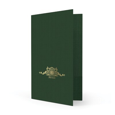 Custom Legal Two Pocket Presentation Folders, 9" x 14.5", Emerald Green Linen 80#, 1 Standard Foil, 50/Pack