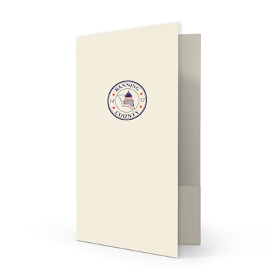 Custom Legal Two Pocket Presentation Folders, 9" x 14.5", Warm White Linen 80#, 2 Standard Inks, 50/Pack