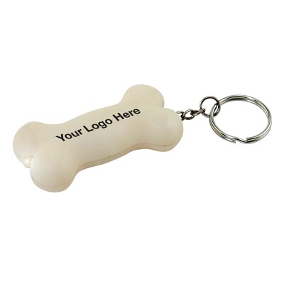 - Promotional dog bone keychains. Simply press to light up.