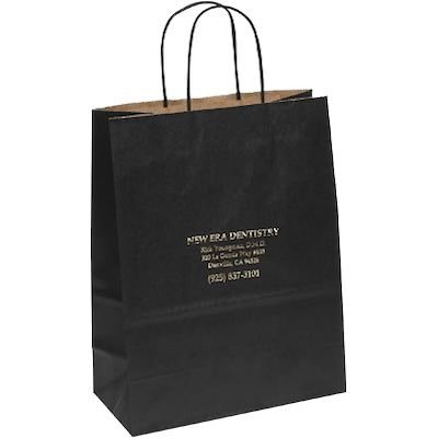 - Matte finish paper shopper with natural kraft color interior (white bag has white interior and handles)