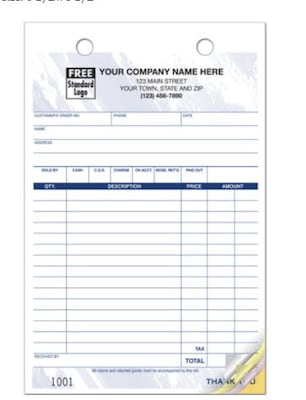 - Preprinted areas simplify write-ups of customer information, salesperson, description of items, payment method & more