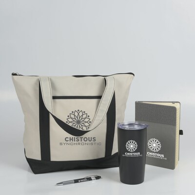 • Each set includes a Classic Zippered Tote, 20 oz. Adventure Stainless Steel Tumbler, Newport Journal & Ultima™ Comfort Luxe Stylus PenThe Pen will come inserted in the pen loop on the journal