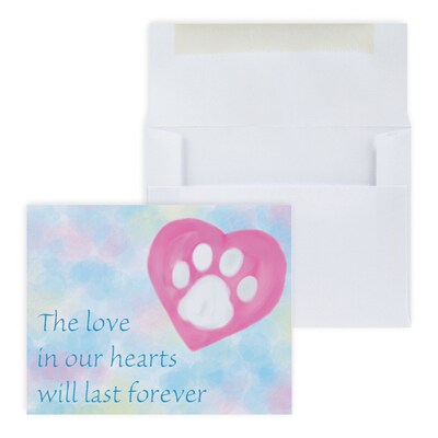 Custom Paw Heart Forever Love Sympathy Cards, With Envelopes, 5-3/8" x 4-1/4", 25 Cards per Set