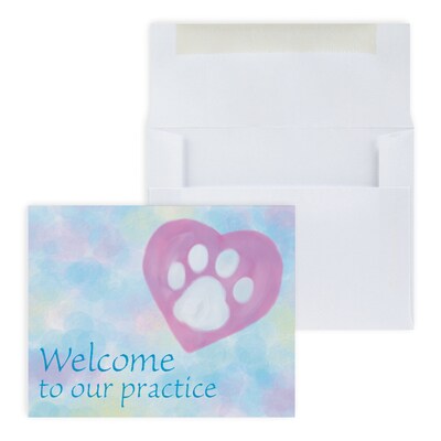 Custom Paw Heart Welcome Greeting Cards, With Envelopes, 5-3/8" x 4-1/4", 25 Cards per Set