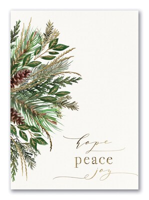 Custom Peaceful Greens Cards, with Envelopes, 5 5/8" x 7 7/8" Holiday Card, 25 Cards per Set