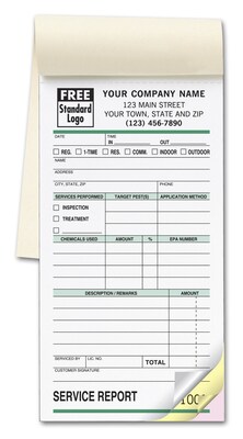 Specially designed pest control reports help you meet regulations, with pre-printed sections to list target pests, chemicals applied, application method and more. Service forms combine professional detail with pocket-sized convenience.