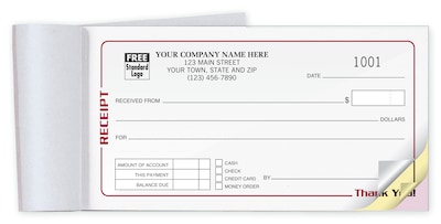 Custom Pocket-Size Receipts, Booked, 3 Parts, 1 Color Printing, 6 3/4" x 3 3/8", 500/Pack