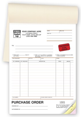Custom Purchase Orders, Classic Design, Booked, 3 Parts, 1 Color Printing, 6 3/8" x 8 1/2", 250/Pack
