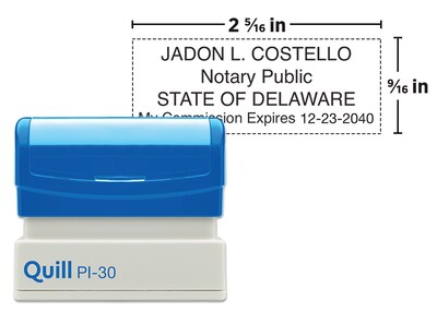 Custom Quill Brand 2000 Plus® PI 30 Pre-inked Notary Stamp, 9/16" x 2-5/16"