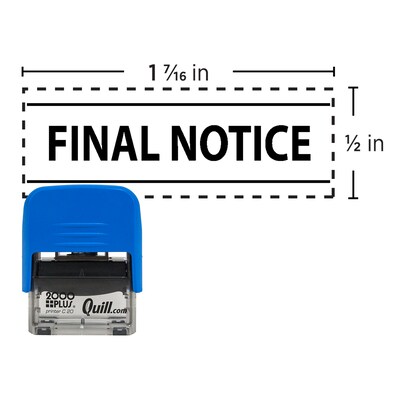 Order Custom Quill Self-Inking Printer 20 Stock Message Stamp - Final Notice, 0.5" x 1.44" today at Quill.com and get fast shipping. Stack coupons to get free gifts & extra discounts!