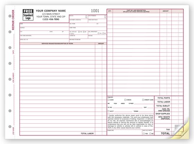 Keep track of the whole repair job! Preprinted forms make it easy to keep an accurate record of labor, parts, service, accessories and more.