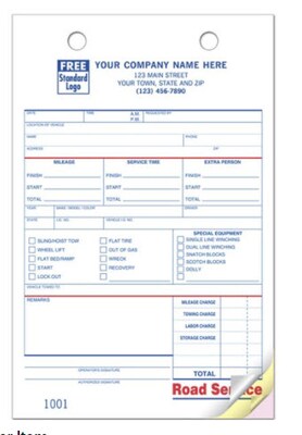 Popular road service register forms save time in the shop or on the street! Use this small format billing form for easy write-ups of your tow & service jobs!