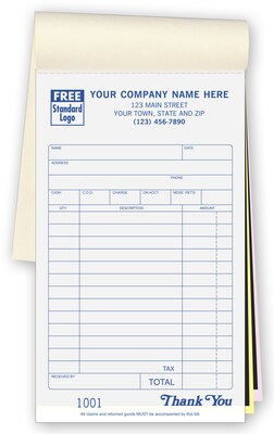 Custom Sales Books - Medium Classic, with Carbons, 3 Parts, 1 Color Printing, 4 3/16" x 7", 500/Pack