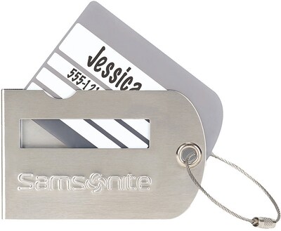 - Durable luggage tag can travel anywhere; Tag is silver stainless steel
