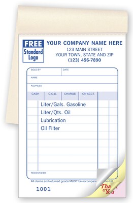 Custom Service Stations Sales Books 2 Parts, 1 Color Printing, 3 3/8" x 5 1/8", 1000/Pack