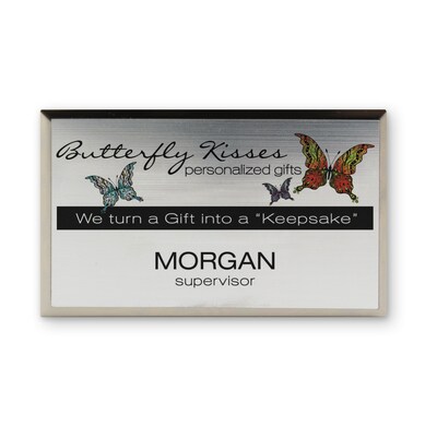 Custom Silver Metallic Full Color Name Badge, 2" x 3-1/2"