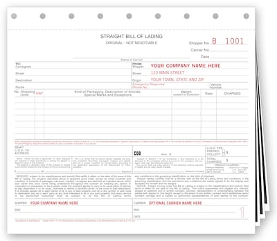 Custom Small Format Bills of Lading with Carbon, 3 Parts, 1 Color Printing, 8 1/2" x 7", 1000/Pack