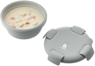 - Collapse and stack it for organization, or fill it up and pop on the lid for at-home storage or a spill-proof meal to-go