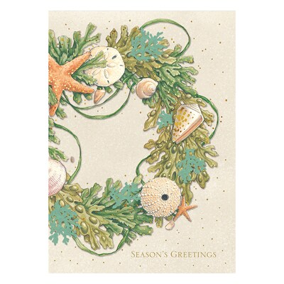Custom Tropical Greenery Wreath Cards, with Envelopes, 5 5/8" x 7 7/8" Holiday Card, 25 Cards per Set