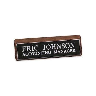 Custom Walnut Desk Block with Engraved Name Plate Sign, 2" x 10"