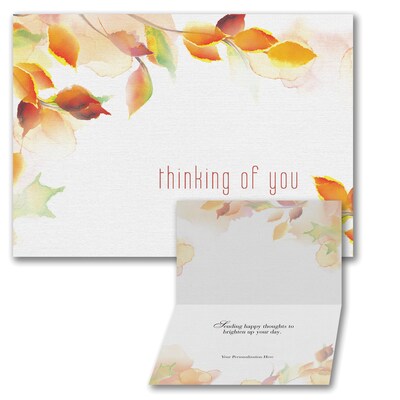 Custom Watercolor Thoughts Thinking of You Cards, With Envelopes, 7-7/8" x 5-5/8", 25 Cards per Set