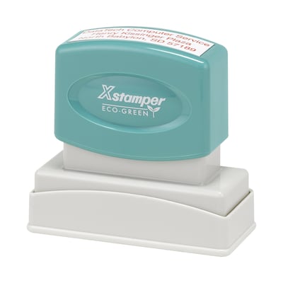 Custom Xstamper® pre-inked stamp made of recycled materials. The laser engraved rubber creates a clean, crisp impression every time!