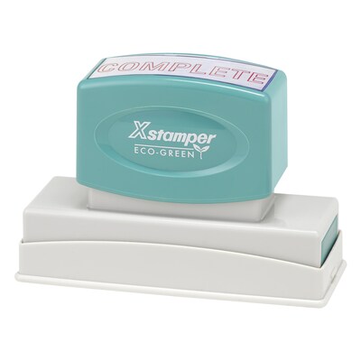 Custom Xstamper® pre-inked stamp made of recycled materials. The laser engraved rubber creates a clean, crisp impression every time!