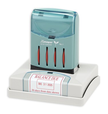 Custom Xstamper® pre-inked dater made of recycled materials. The laser engraved rubber creates a clean, crisp impression every time!